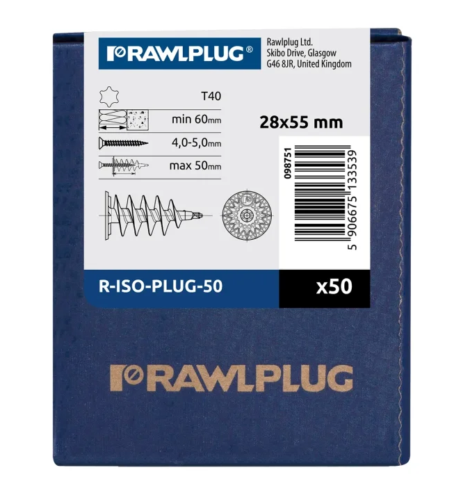 Hmoždinky DRIVA R-ISO-PLUG 50 mm jsou ideální pro použití v zateplovacích systémech budov. Skvěle se hodí pro montáž lehkých prvků na fasádách zateplených polystyrenem, jako jsou držáky, dekorace nebo informační tabule.