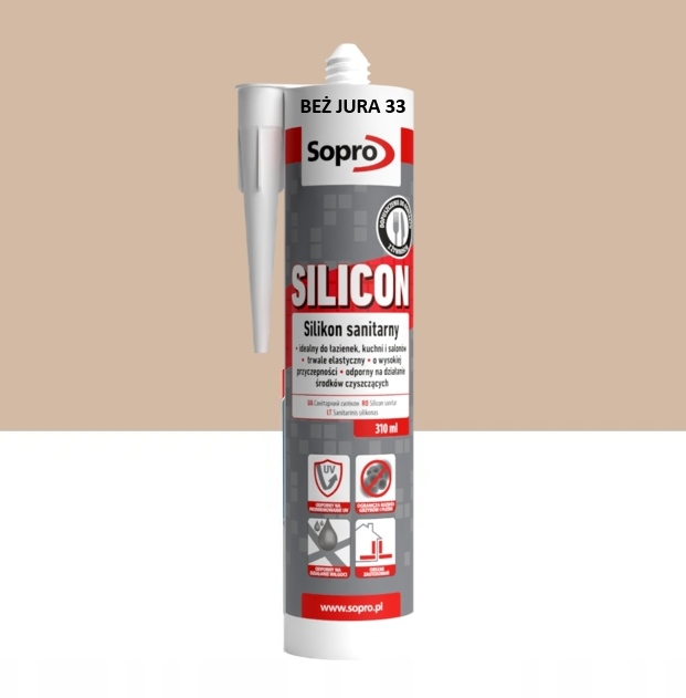 Sanitární silikon Sopro – elastický silikon do koupelny a kuchyně – BÉŽOVÁ JURA 33