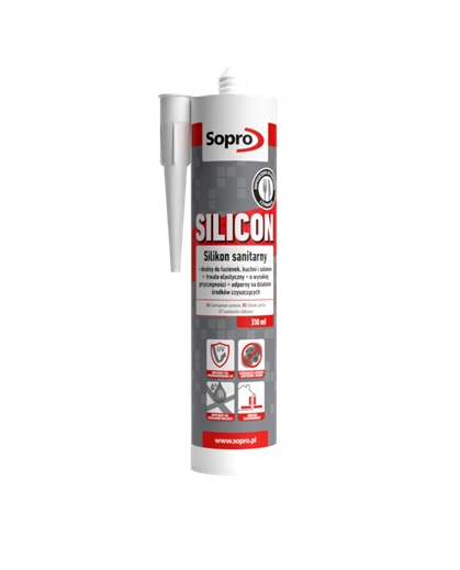 Sanitární silikon Sopro je vysoce kvalitní elastická těsnicí hmota určená k vytváření spojovacích a dilatačních spár v prostorách se zvýšenou vlhkostí. Produkt se skvěle hodí do koupelen, kuchyní i dalších míst vystavených častému kontaktu s vodou. Díky speciálnímu složení silikon zajišťuje trvanlivé, estetické a vlhkosti odolné utěsnění, které chrání povrchy před pronikáním vody a vznikem plísní.