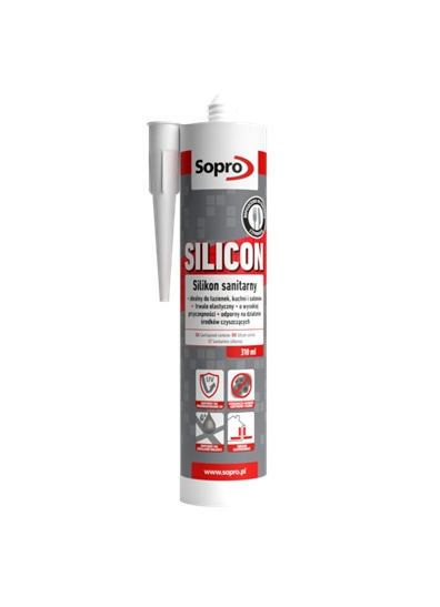 Silikon sanitarny Sopro został zaprojektowany specjalnie do stosowania w miejscach narażonych na działanie wilgoci. Produkt zawiera składniki ograniczające rozwój grzybów i pleśni, co pozwala utrzymać estetyczny wygląd spoin przez długi czas.